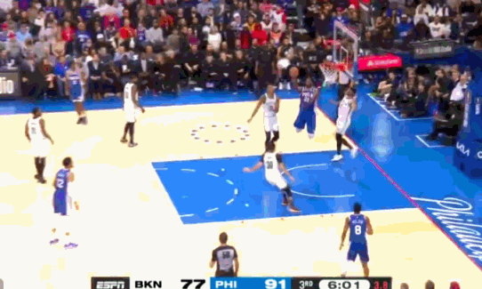 打凯尔特人,恩比德命中了一个平平无奇中距离且造成了对手犯规