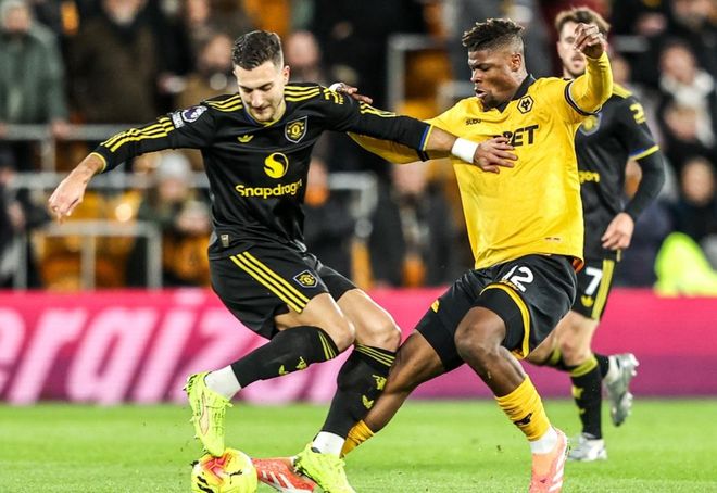 第29分钟,库尼亚错失良机,他禁区中路补射,面对大半个空门。结果他的射门被后卫挡了出去。8分钟后,阿马德-迪亚洛的射门也是被挡了出去。半场补时阶段,贝勒加德在禁区中路倒地射门,球进了!双方回到了同一起跑线。半场结束,曼联1-1狼队。