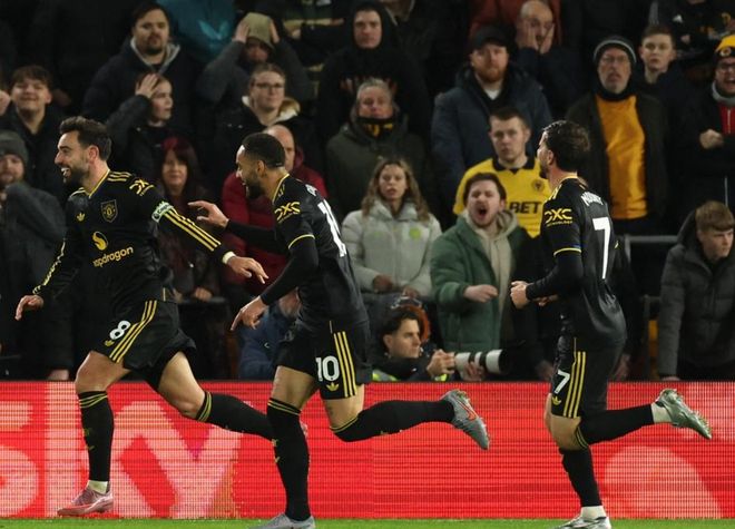 下半场易边再战。第51分钟,曼联再次进球!达洛特接到直塞球,前插获得单刀机会。他没有选择射门,而是冷静横传,姆伯莫包抄,轻松把球送进空门。第62分钟,曼联再次进球!布鲁诺-费尔南德斯送出妙传,芒特前插,单刀凌空射门,球进了!门将一点反应都没有。第80分钟,曼联获点球机会。布鲁诺-费尔南德斯主罚,他稳稳罚进,杀死比赛。最终,曼联4-1击败狼队。